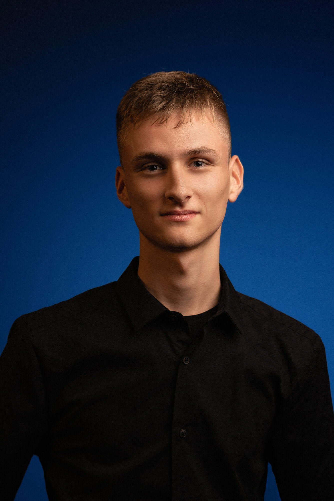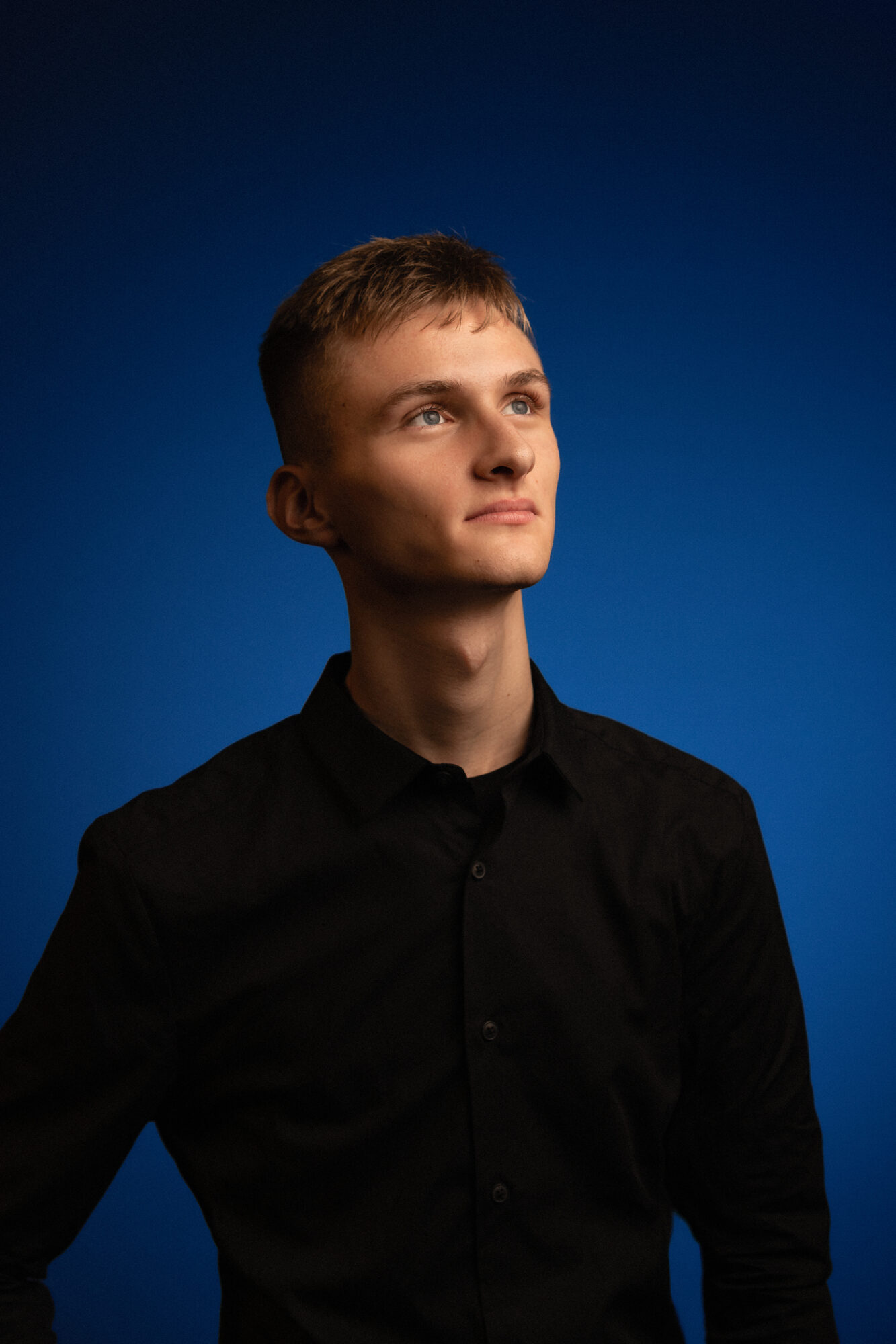 Comme j’avais un peu carte blanche sur le fond, j’ai proposé à Kilian un fond coloré en bleu grâce à mes flashs.